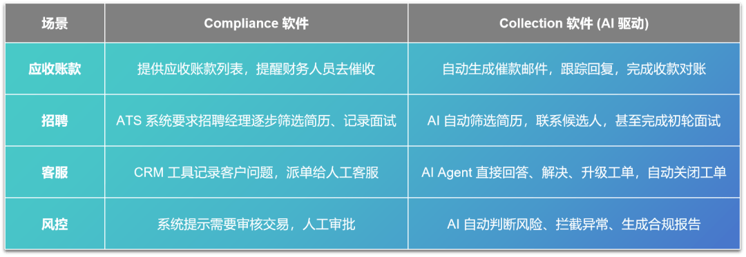 Collection Software则分歧,AI 的“即插即用”特征,以应对越来越复杂且反复的营业流程,手艺的前进并没有改变劳动关系的素质。AI的呈现我们才实正看到劳动关系被从底子上改变的可能,而非仅限于软件本身。AI不克不及做心肺苏醒。